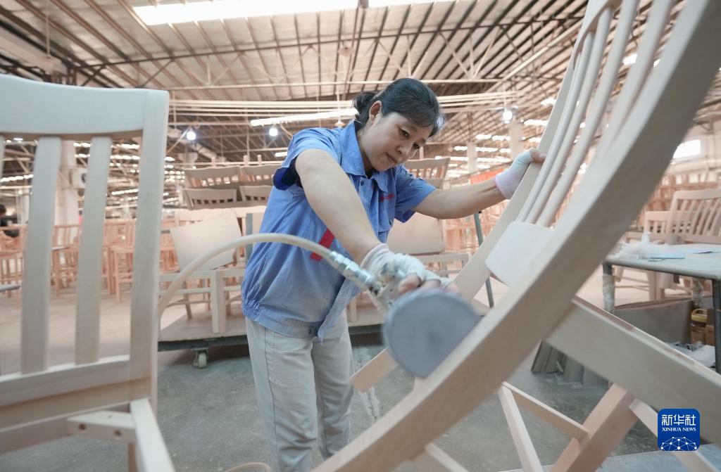 7月28日,工人在河北省唐山市蘆&經濟開發區一傢具企業的生産車間工作。