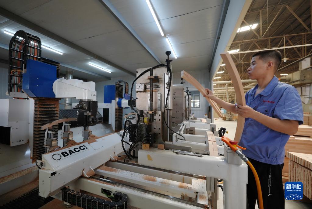 7月28日,工人在河北省唐山市蘆&經濟開發區一傢具企業的生産車間工作。