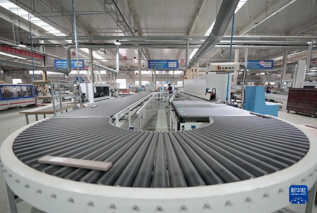 7月28日,工人在河北省唐山市蘆&經濟開發區一傢具企業的生産車間工作。