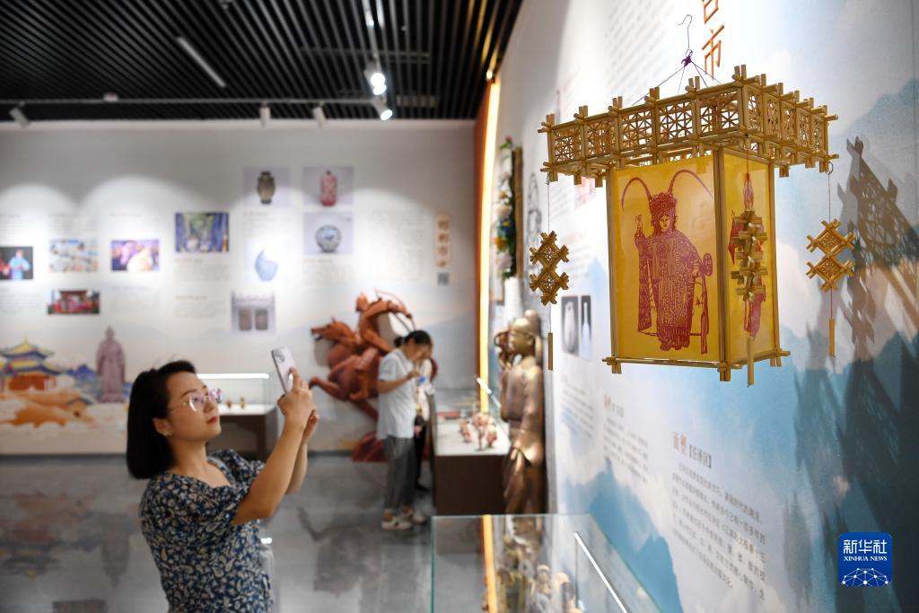 7月28日,參觀者在“燕趙神韻——河北省民間文藝精品展”上拍照。