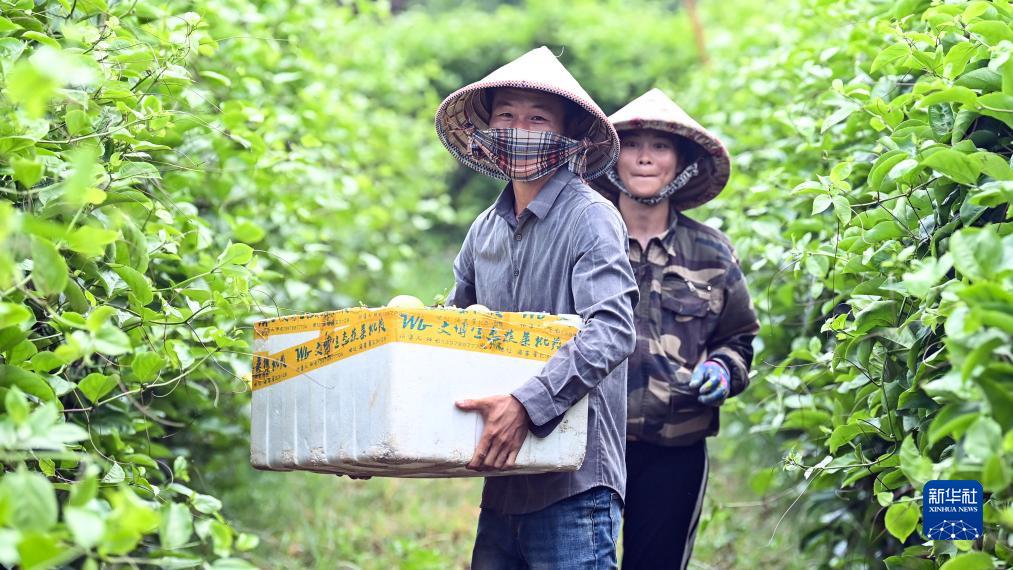當下,廣西欽州市欽南區犀牛腳鎮“欽蜜9號”黃金百香果進入收穫季。據介紹,欽南區是新品種“欽蜜9號”黃金百香果的原産地,今年種植面積8000多畝,預計産量1.2萬噸,産值超1.5億元。