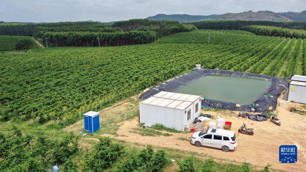 這是欽州市欽南區犀牛腳鎮大坪村的“欽蜜9號”黃金百香果園(5月26日攝,無人機照片)。