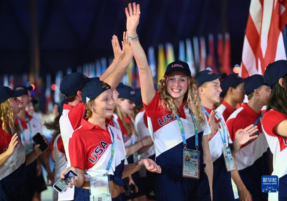 7月28日,美國大學生體育代表團在開幕式上入場。