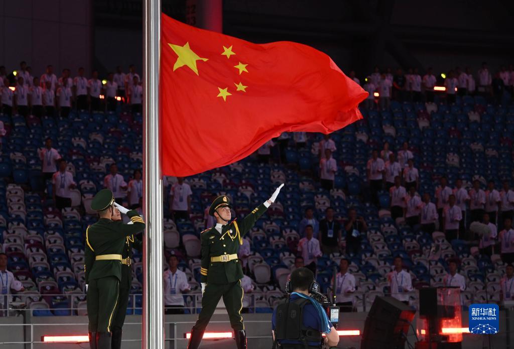 這是7月28日拍攝的開幕式上的升旗儀式。