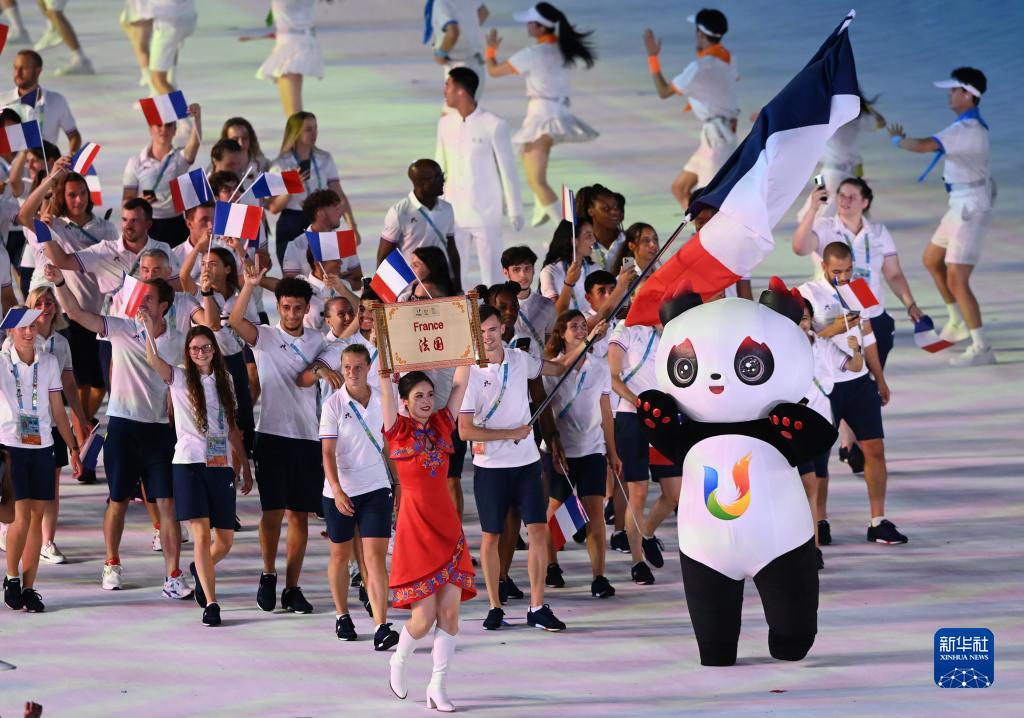 7月28日,法國大學生體育代表團在開幕式上入場。