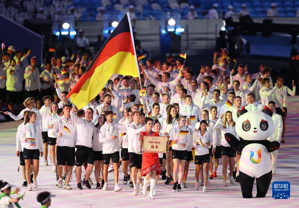 7月28日,德國大學生體育代表團在開幕式上入場。