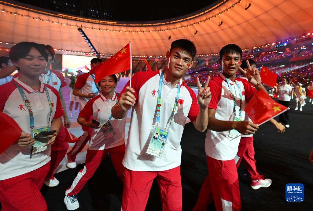 7月28日,中國大學生體育代表團在開幕式上入場。