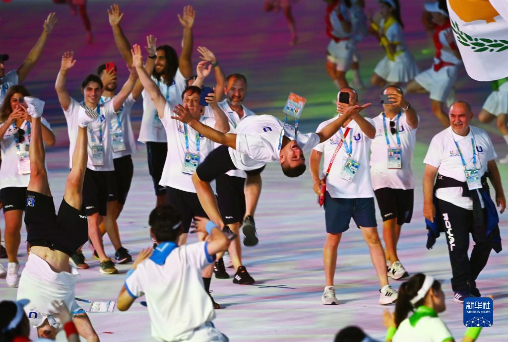 7月28日,塞浦路斯大學生體育代表團在開幕式上入場。