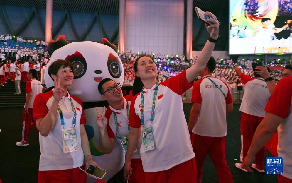7月28日,中國大學生體育代表團在開幕式上入場。