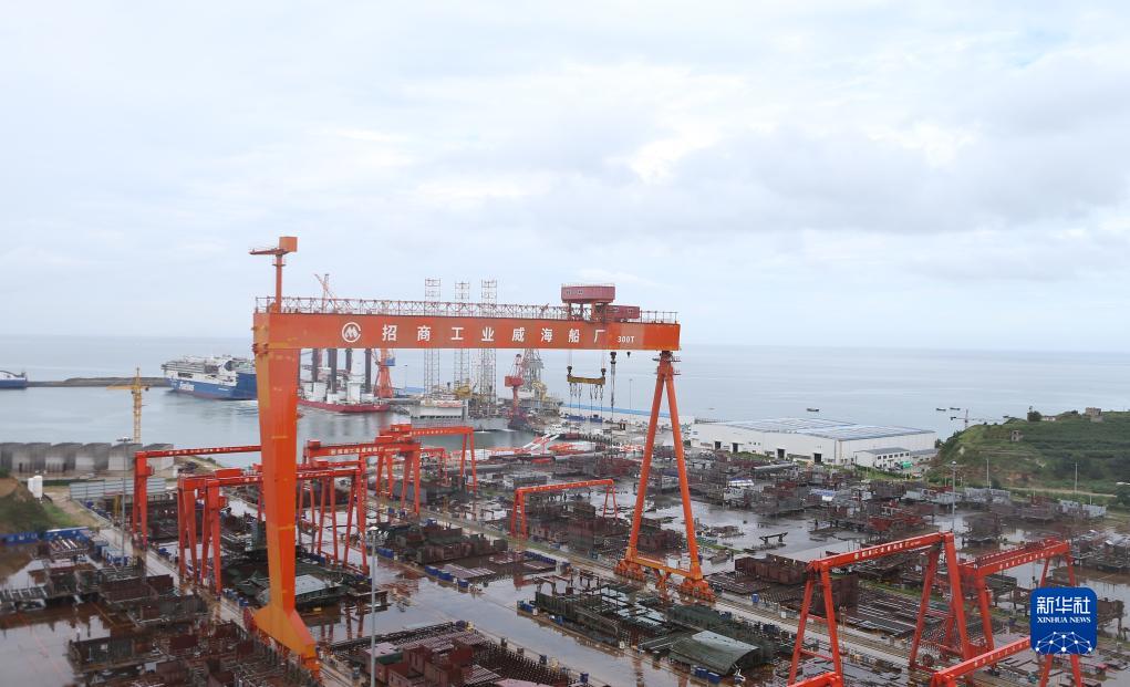 這是招商局金陵船舶(威海)有限公司廠區一角(7月28日攝)。