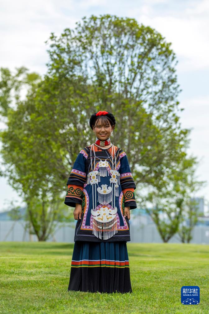 7月23日,吉好有果在成都大運會開幕式綵排之前留影。新華社記者 沈伯韓 攝