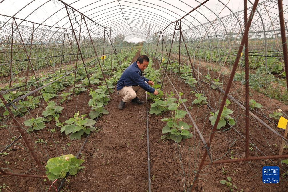 7月25日,在莫桑比克馬普托省博阿內地區,中國技術員頓新洪在中莫農業技術示範中心蔬菜大棚內查看蔬菜。