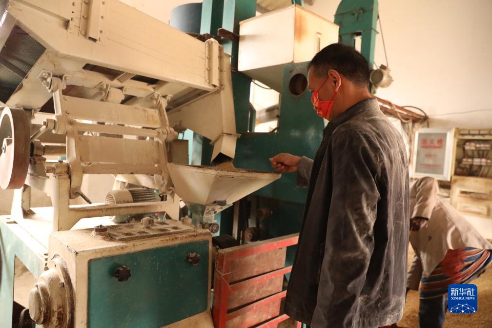 7月25日,在莫桑比克馬普托省博阿內地區,中國技術員張浩波在中莫農業技術示範中心加工水稻。