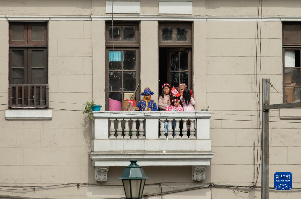 7月28日,在秘魯首都利馬,民眾在陽&觀看獨立日慶祝活動。