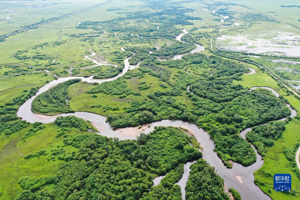 夏日時節,位於內蒙古自治區呼倫貝爾市牙克石市的免渡河國家濕地公園鬱鬱蔥蔥,景色優美。