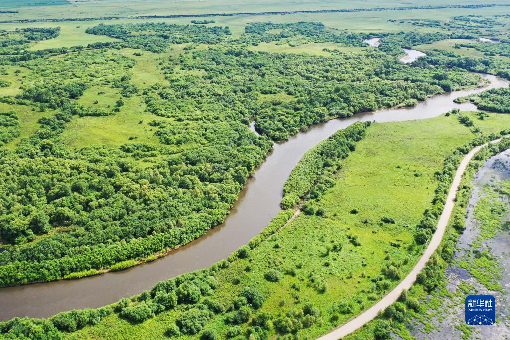 這是7月29日拍攝的免渡河國家濕地公園景色(無人機照片)。