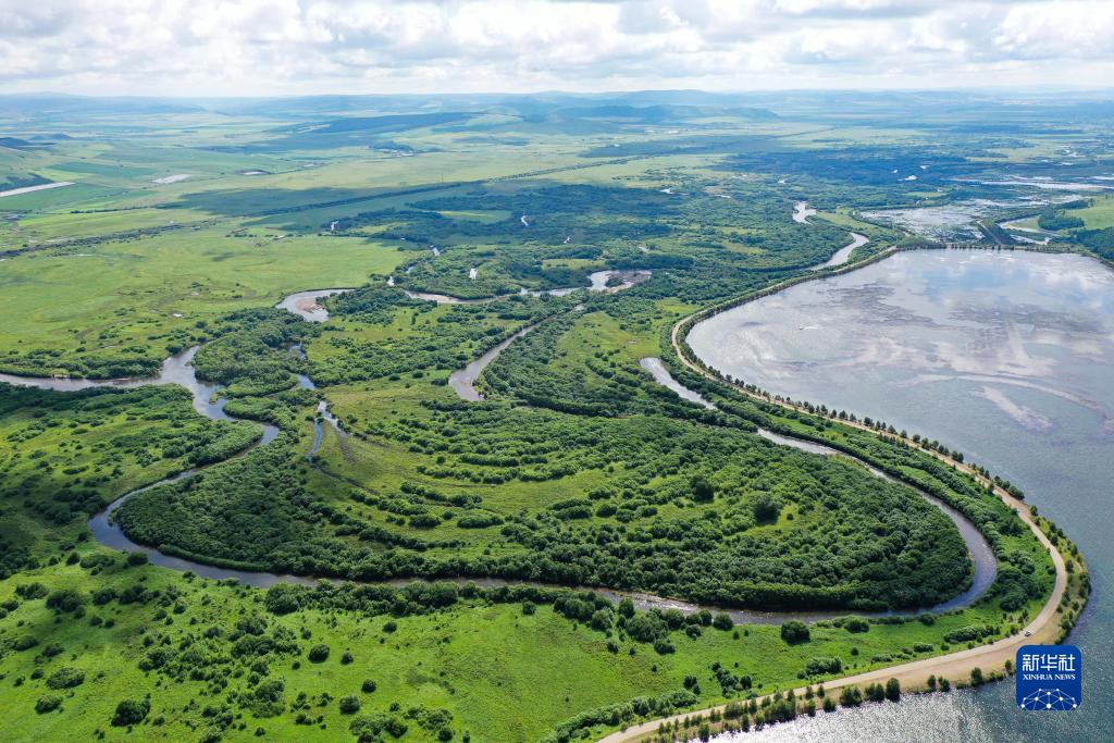 夏日時節,位於內蒙古自治區呼倫貝爾市牙克石市的免渡河國家濕地公園鬱鬱蔥蔥,景色優美。