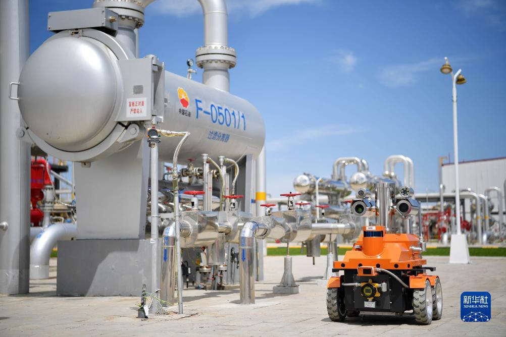 智能巡檢機器人在中國石油長慶油田第三採氣廠蘇裏格天然氣第六處理廠進行日常巡檢(7月23日攝)。