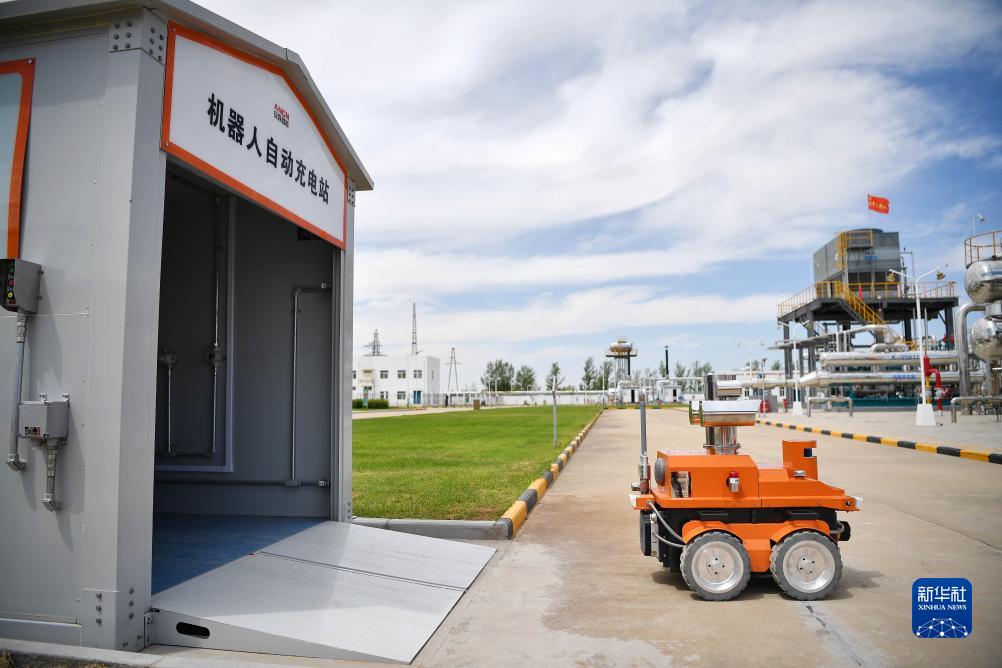 智能巡檢機器人在中國石油長慶油田第三採氣廠蘇裏格天然氣第六處理廠進行日常巡檢(7月23日攝)。