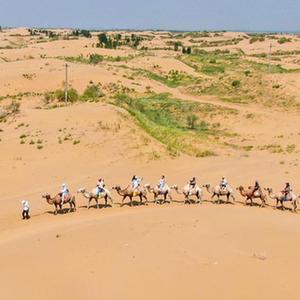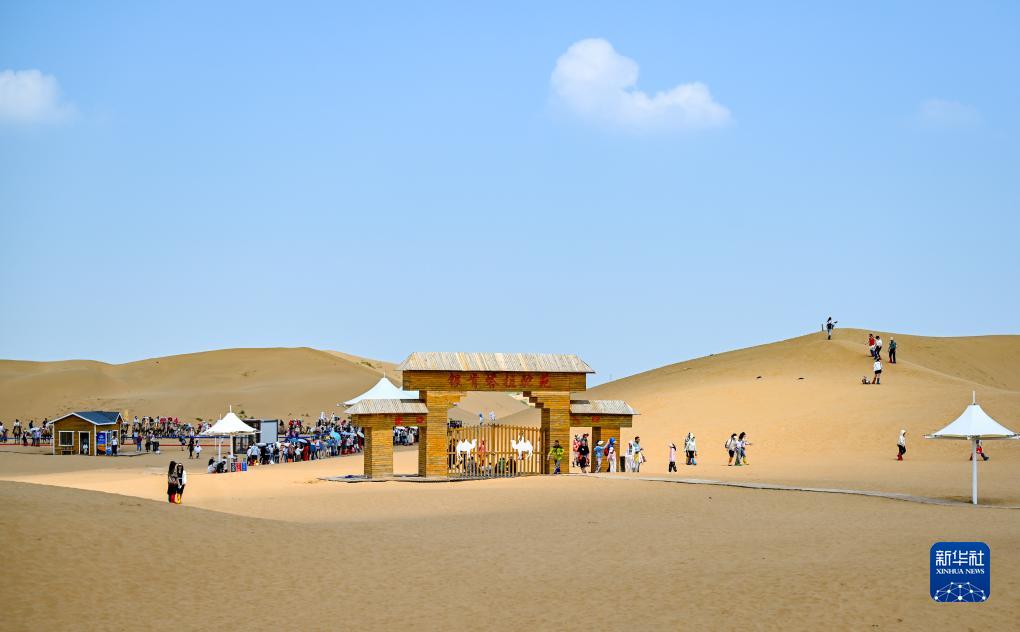 盛夏時節,內蒙古鄂爾多斯市達拉特旗境內的庫布其沙漠游客絡繹不絕,沙漠旅游一派火熱。游客們在飽覽大漠美景的同時,也體驗騎駱駝、滑沙等項目的獨特魅力。
