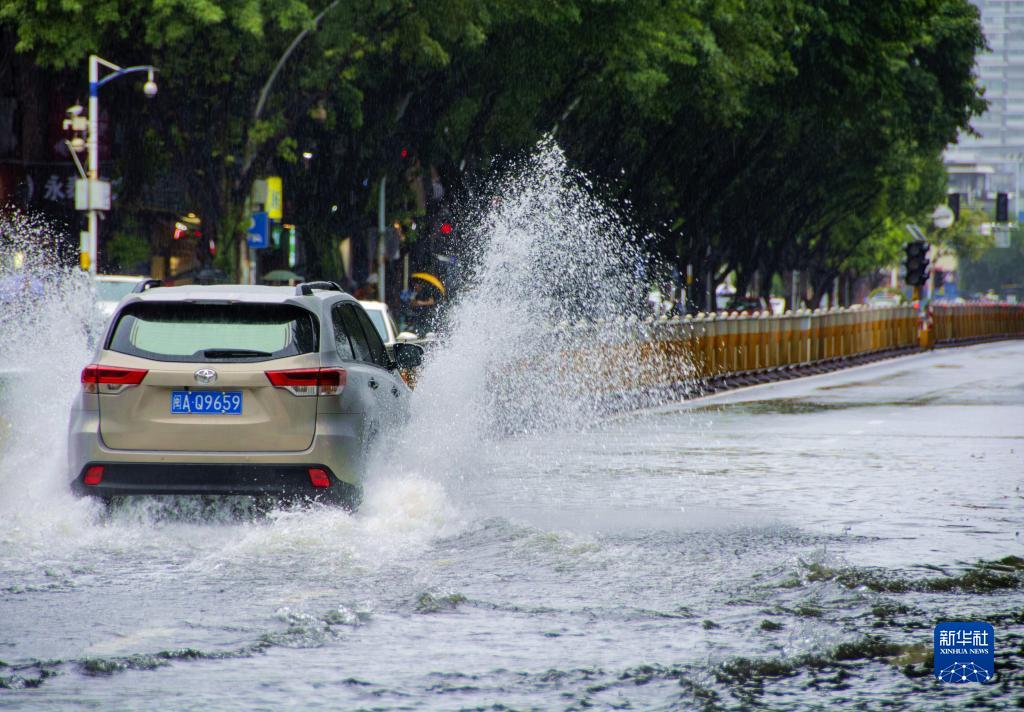 7月29日,車輛駛過福州市晉安區福新路積水路段。