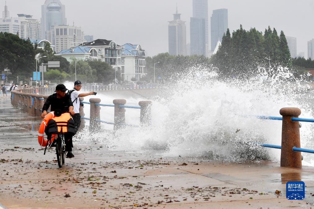 當日,受颱風“杜蘇芮”外圍環流影響,山東省青島市沿海掀起大浪。