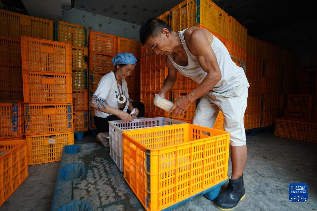 兩名工人在劉禹丹的豆腐加工廠內工作(7月27日攝)。新華社記者 陳欣波 攝