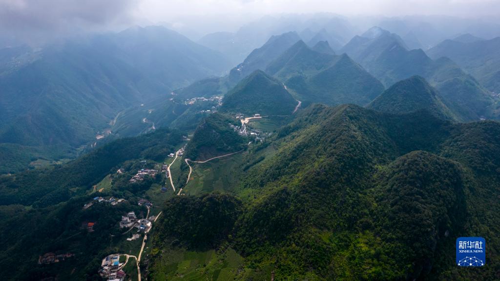 這是無人機視角下的岩頭村,位於畫面中間的山體中(無人機照片,7月27日攝)。新華社記者 楊植森 攝