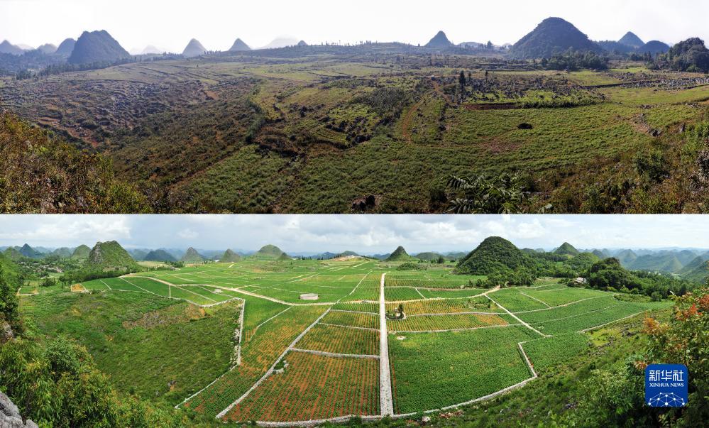 這是一張拼版照片:上圖為2010年西疇縣長箐村中低産田改造前的資料照片(西疇縣融媒體中心供圖);下圖為2011年,西疇縣長箐村中低産田改造後的資料照片(西疇縣融媒體中心供圖)。