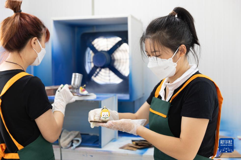 7月27日,工作人員在西疇湯谷文化創意産業園為産品噴漆。新華社記者 呂帥 攝