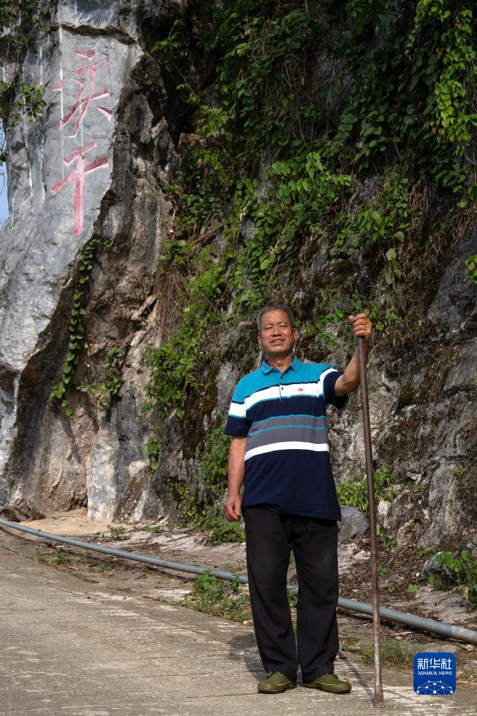 李華明站在自己和村民一起修好的從岩頭村通往外面的公路上(7月26日攝)。新華社記者 費茂華 攝