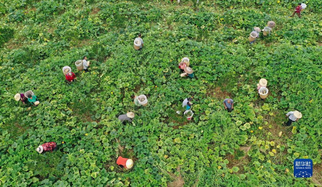 近日,貴州省銅仁市松桃苗族自治縣種植的南瓜進入成熟采收期。近年來,該縣調優産業種植結構,採取高矮套種等方式,拓寬群眾增收渠道,助力鄉村振興。