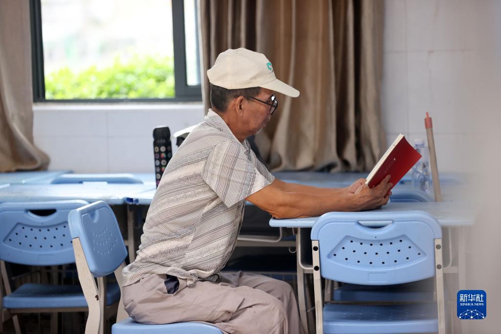 7月29日,一名被轉移安置的居民在福建省廈門市新圩學校臨時安置點看書。