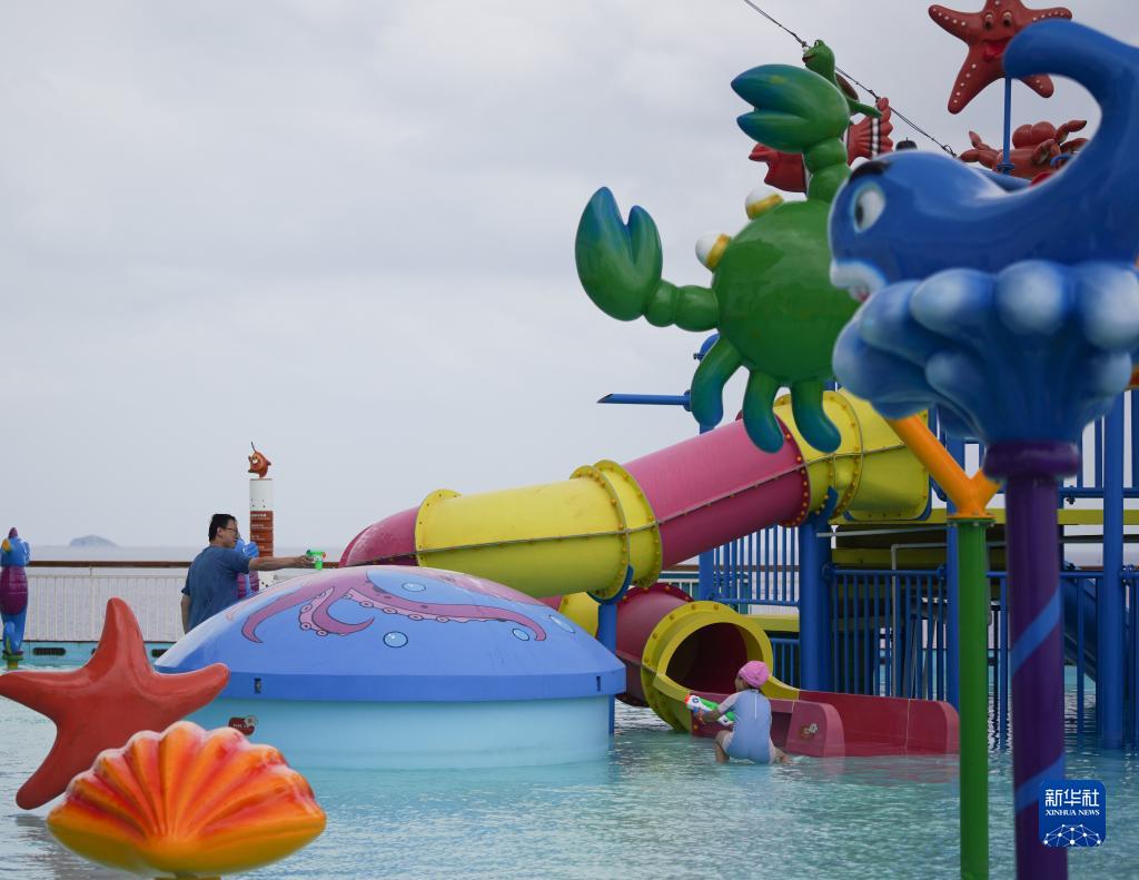 7月29日,游客在“耕海1號”水上游樂區游玩。