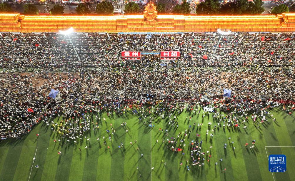 7月29日,觀眾在比賽結束後涌入賽場(無人機照片)。新華社記者 歐東衢 攝