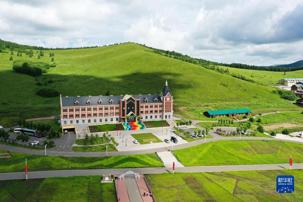 夏日時節,內蒙古自治區呼倫貝爾市牙克石市鳳凰山景區草木蔥蘢,景色宜人,吸引游客前來游玩。