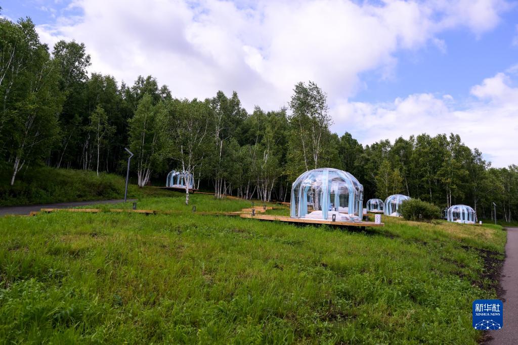夏日時節,內蒙古自治區呼倫貝爾市牙克石市鳳凰山景區草木蔥蘢,景色宜人,吸引游客前來游玩。