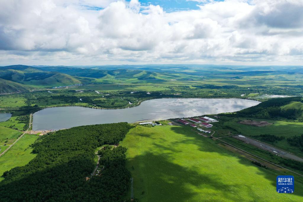7月29日拍攝的牙克石市鳳凰山景區風光(無人機照片)。