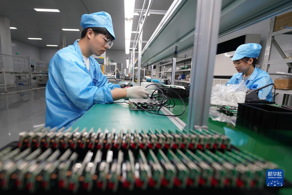 7月29日,河北省平鄉縣一家童車生産企業的員工在檢測電動童車控制器。