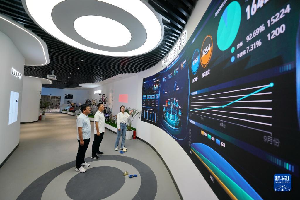 7月29日,河北省平鄉縣自行車(童車)智聯平台展廳工作人員為客商講解平台功能。
