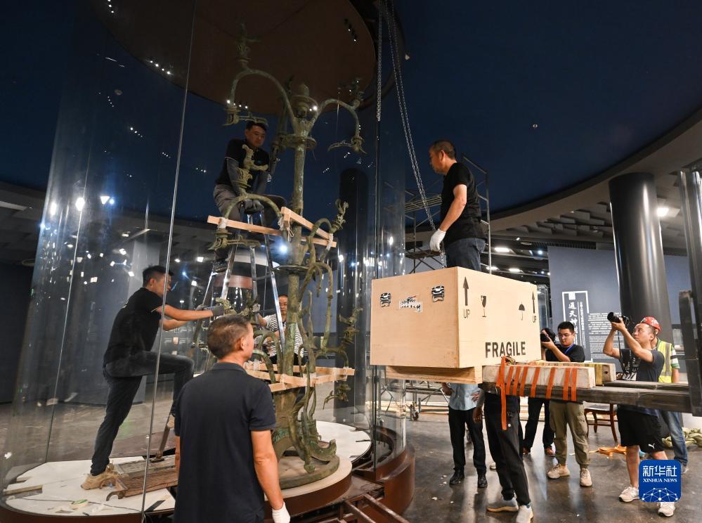 經過一個多月時間的閉館後,7月27日,三星堆博物館新館在四川德陽廣漢市試運行,一大批珍貴文物再次與公眾見面。其中,高3.96米、重360斤的Ⅰ號大型銅神樹是三星堆的“鎮館之寶”,也是新館的“壓軸之作”。在充分討論搬遷方案後,工作人員用兩天時間成功完成了它的保護性固定、分離、轉運、入庫等環節,並在新館試運行後正式展出。