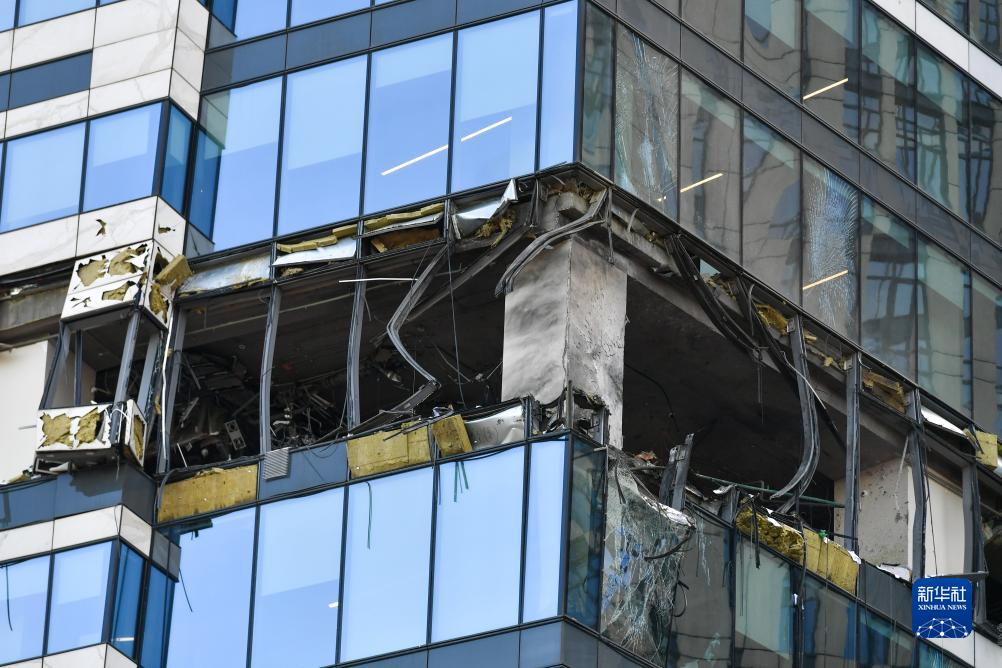 這是7月30日在俄羅斯莫斯科拍攝的被無人機襲擊的建築。