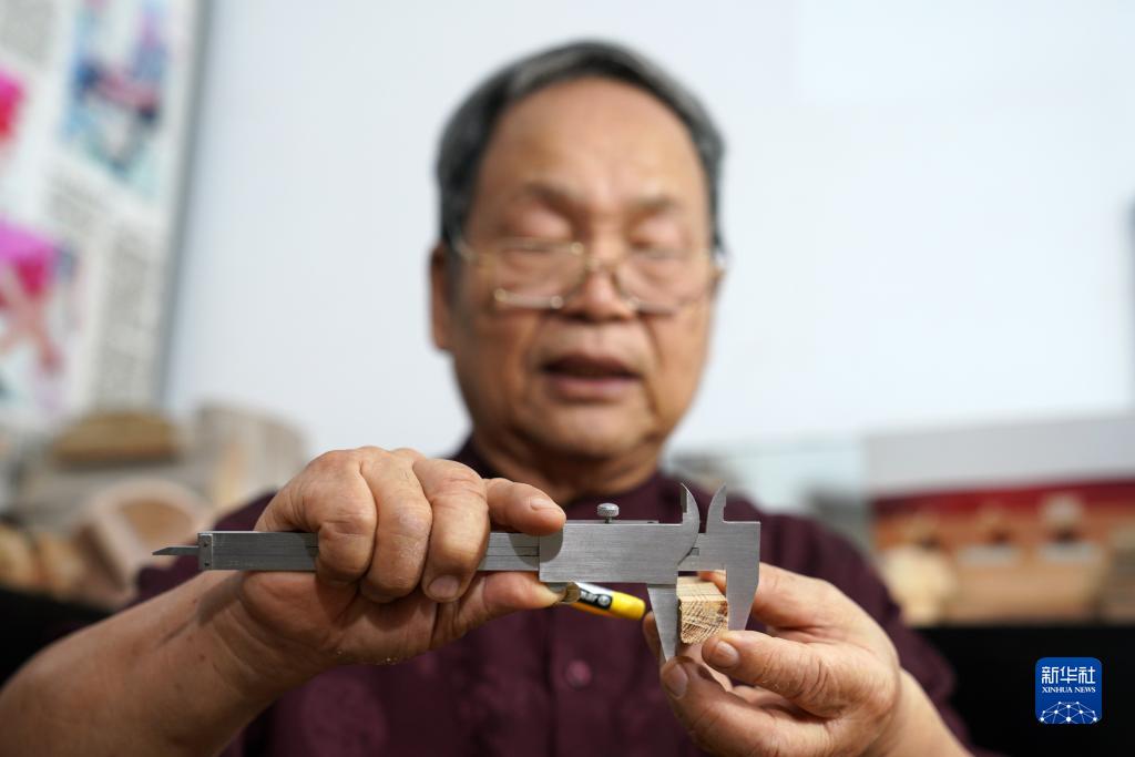 7月30日,侯全辰在工作間內製作孔明鎖。