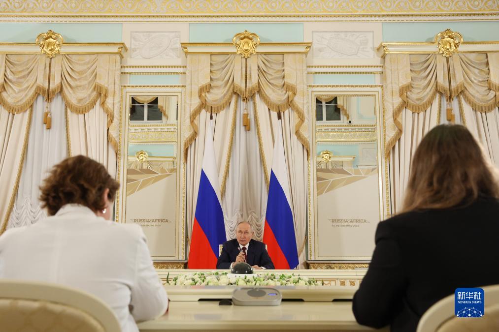 7月29日,俄羅斯總統普京在聖彼得堡出席第二屆俄羅斯-非洲峰會會後新聞發布會。