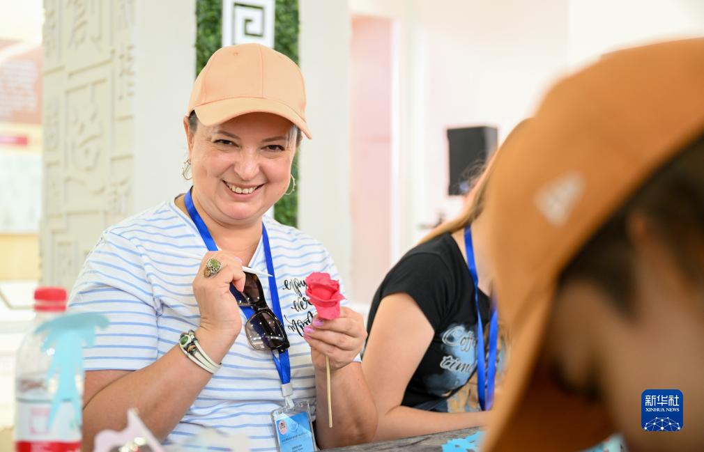 7月30日,來自俄羅斯的隨團教師在活動中製作面塑。