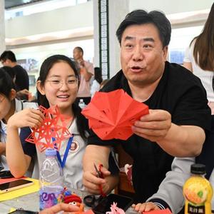 當日,來自2023呼和浩特國際青少年友好交流營的百餘名中外師生來到內蒙古呼和浩特市內蒙古展覽館,學習體驗和林格爾剪紙、青城面塑、馬頭琴製作等傳統非遺技藝。
