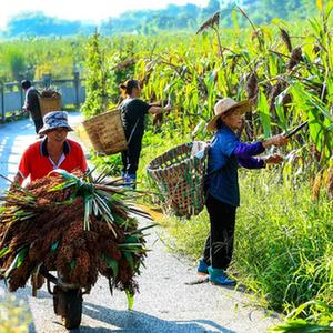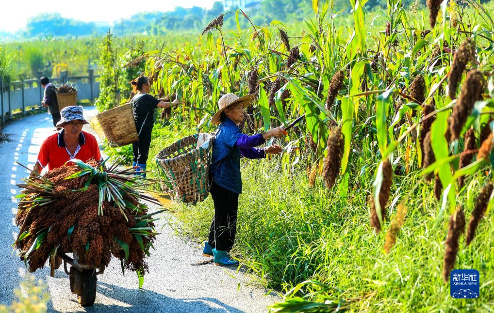 盛夏時節,四川省瀘州市高粱進入收穫季,村民趁晴好日子抓緊搶收。