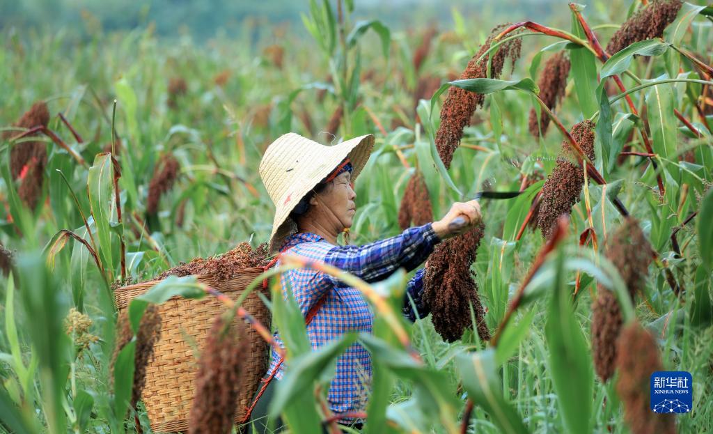 盛夏時節,四川省瀘州市高粱進入收穫季,村民趁晴好日子抓緊搶收。