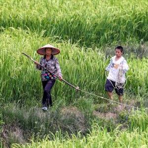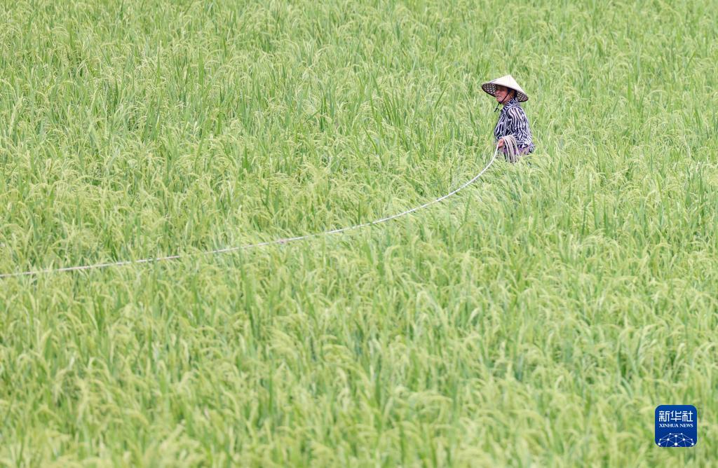 近日,貴州省黔東南苗族侗族自治州岑鞏縣的雜交水稻陸續抽穗揚花,進入最佳人工授粉期,當地農戶紛紛走進稻田,利用竹竿、繩索等工具“趕花”,讓雜交水稻充分授粉,為水稻豐産豐收和國家種子安全打下良好基礎。