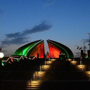 近日,巴基斯坦首都伊斯蘭堡地標建築亮起中巴兩國國旗顏色燈光,慶祝中巴經濟走廊啟動十周年。